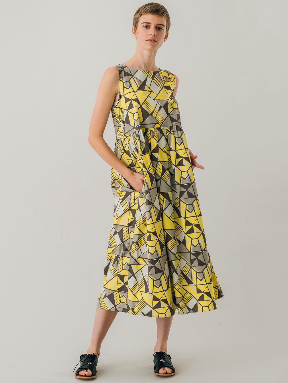 マルチ パターン ティアード スリーブレス ワンピース モザイク バーズ