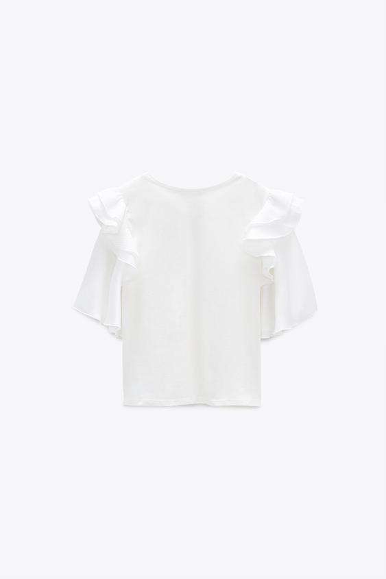 Zaraで2990円 フリルチュール付きのフェミニンtシャツ ローリエプレス