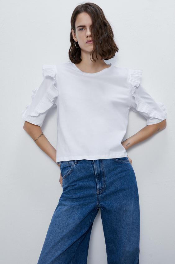 プリーツ入りフリルトリムtシャツ Zara Japan 日本