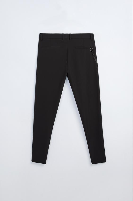 Zara Man チェーン付 ロークロッチスキニーパンツ ブラック Zara パンツ Buyma