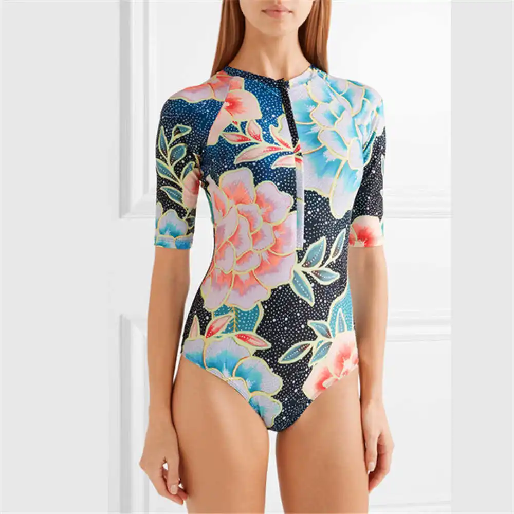 Short Sleeves Rash Guard 17 Floral Print Swimwear Zipper One Piece Swimsuit Dive High Neck Rashguards Surf Bodysuit Wetsuit Xl Short Sleeve Rash Guard Rashguard Surfrash Guard Aliexpress