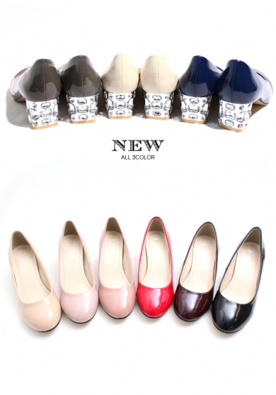 ビジューヒールラウンドトゥパンプス ブランド大好きファッションshop