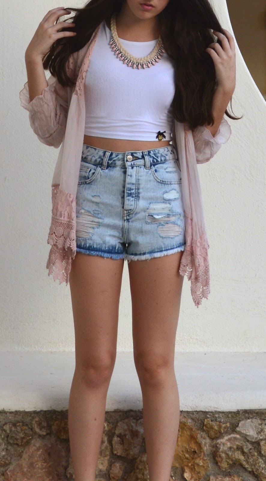 What I Wore High Waisted Shorts Crop Top And Kimono Jacket Call Me Katie