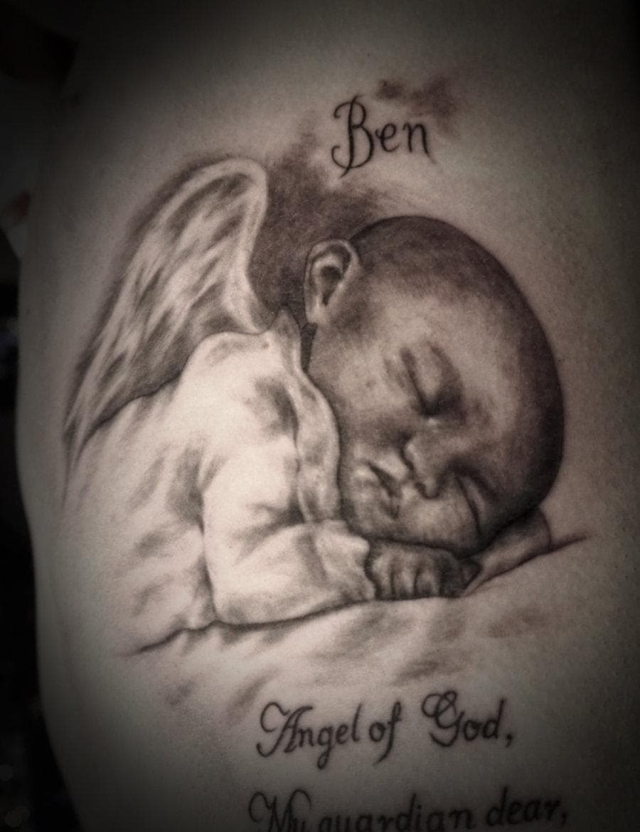 The baby angel tattoos are in the main to be worn in loving memory of a lost child or as a sign of love for closed ones. Sep 3, 18 - Explore Crystal De La Cruz's board "In loving memory tattoos", followed by 510 people on Pinterest. Memorial Tattoo for a Child There are no words powerful enough for the loss of a child.