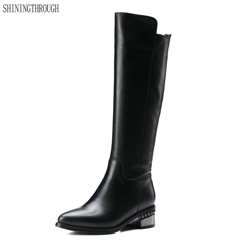 19 Classic Women Knee High Boots Square Low Heel Genuine Leather Woman Riding Boots High Boots Autumn Winter Shoes Woman Knee High Boots Aliexpress