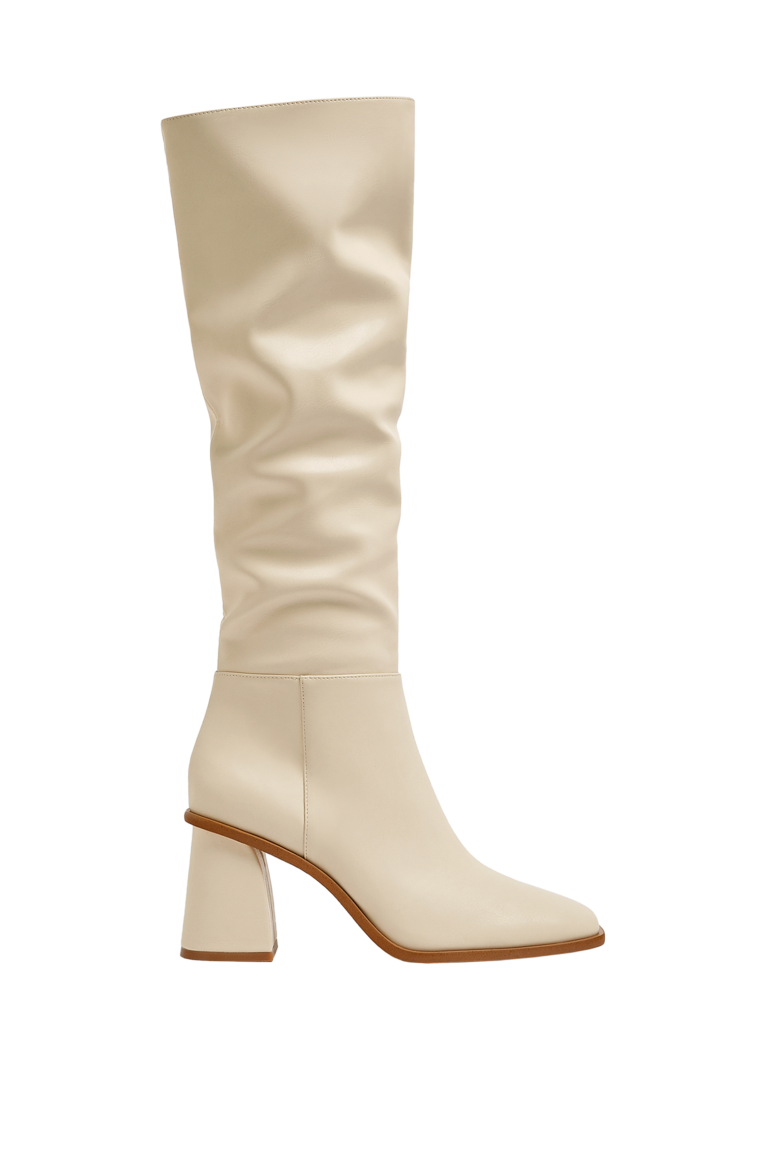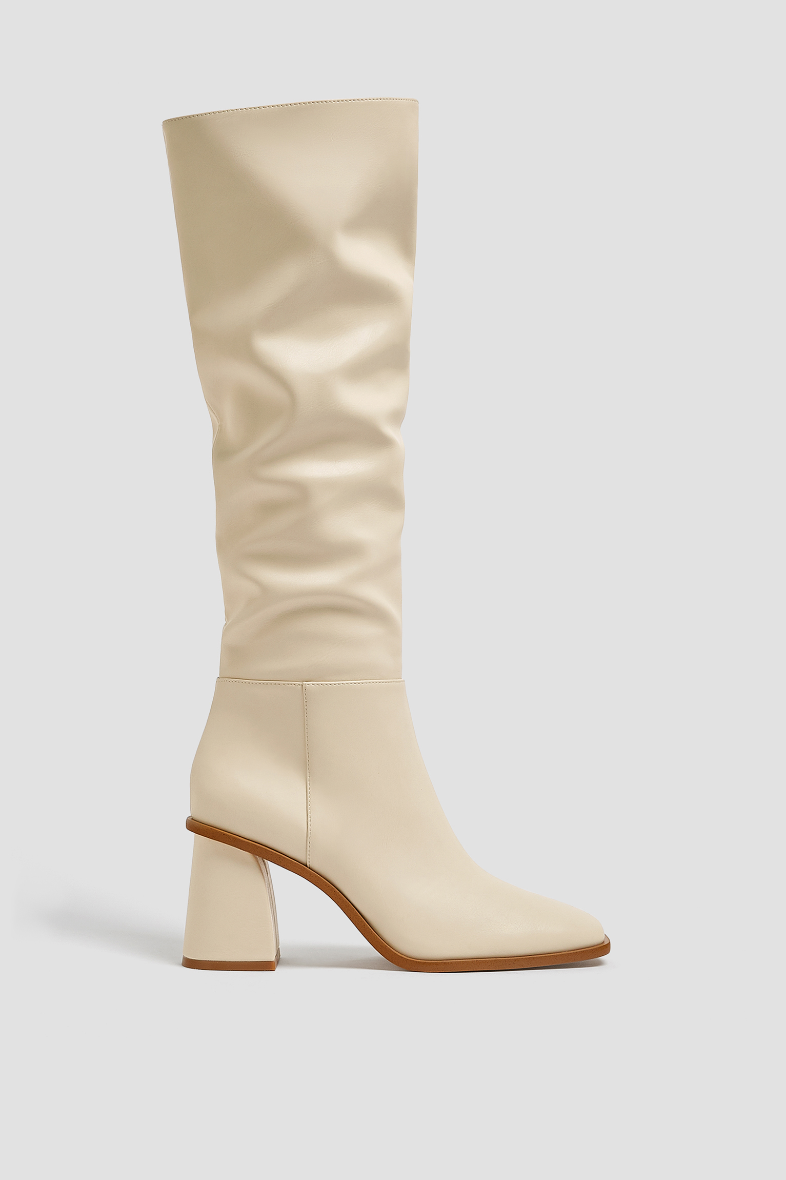White Round Block Heel Knee High Boot Shoes Prettylittlething Uae