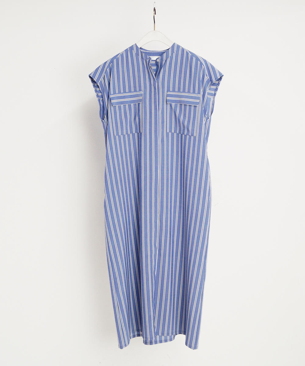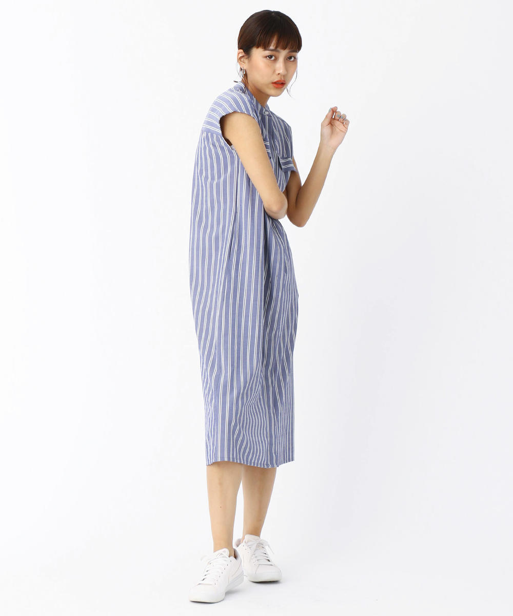 ストライプノースリーブワンピース ノースリーブワンピース ワンピース スキッパーシャツワンピース