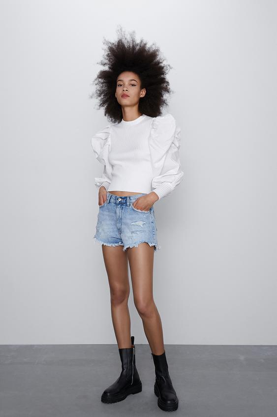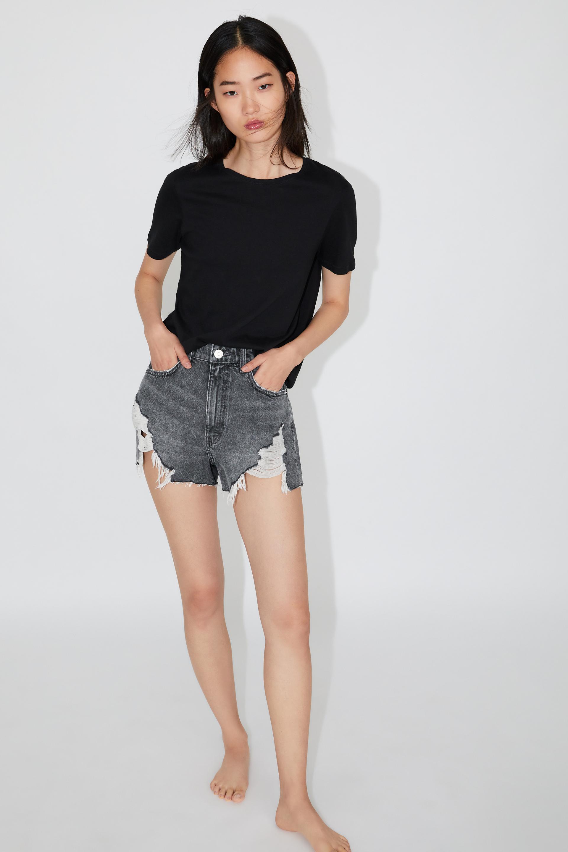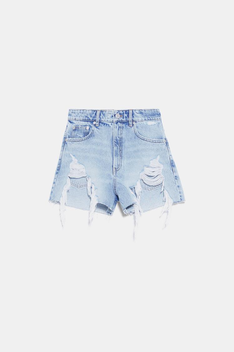Hi Rise Ripped Denim Shorts Trf Zara Paraguay
